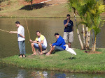 Sexta-feira, dia 16 de janeiro, por volta das 10h30, vimos no jardim externo do loteamento um topógrafo fazendo os cálculos para definir a área de asfalto da estrada. As estacas brancas marcam toda a extensão da estradinha de terra desde a fazenda dos Belucci, passa pela nossa portaria e segue em frente.